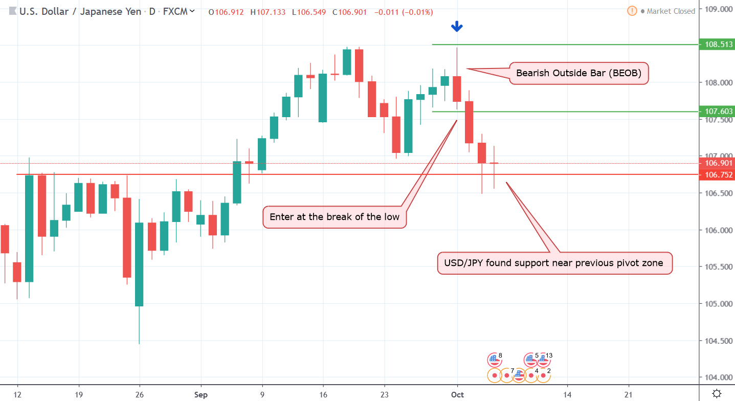 Alt text: Price action trading example EUR/USD