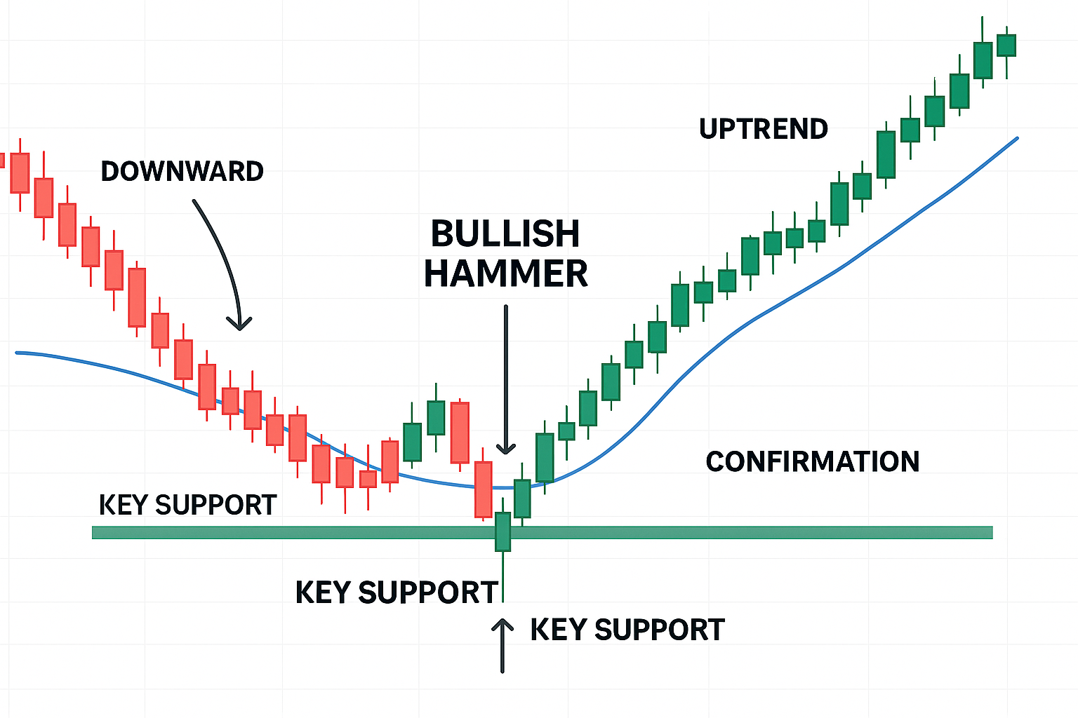 Candlestick patterns show market sentiment. The most common patterns: